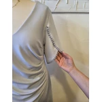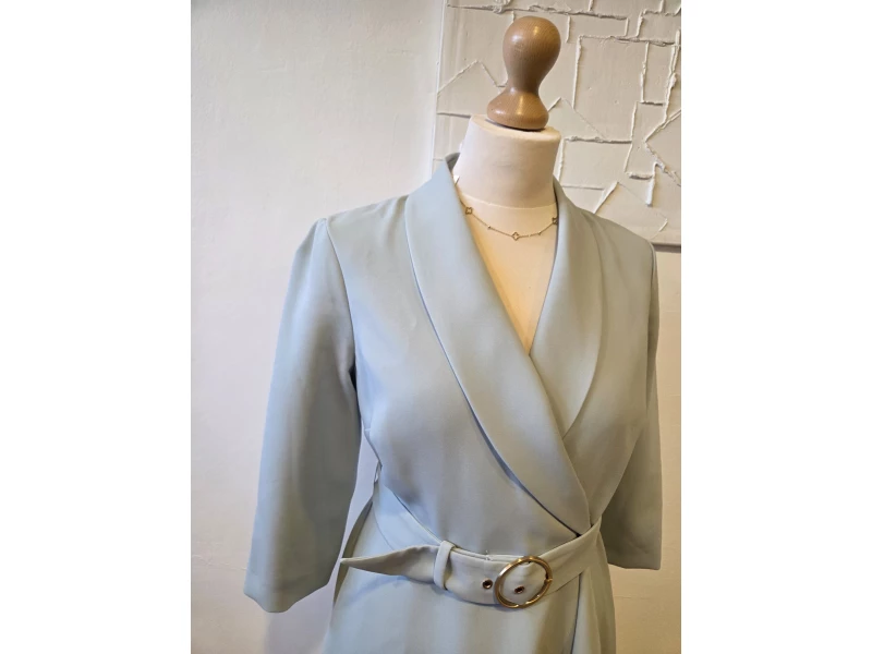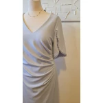 Mooie lichtblauwe jurk van Joseph Ribkoff met een V-hals en opvallende mouwen met pareldetails. De plooien aan de zijkant zorgen voor een mooie pasvorm. Geschikt voor een feest, bruiloft of andere gelegenheid.
