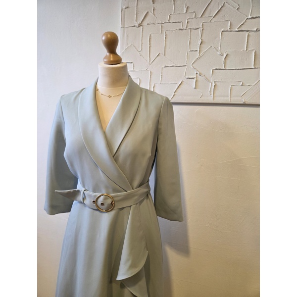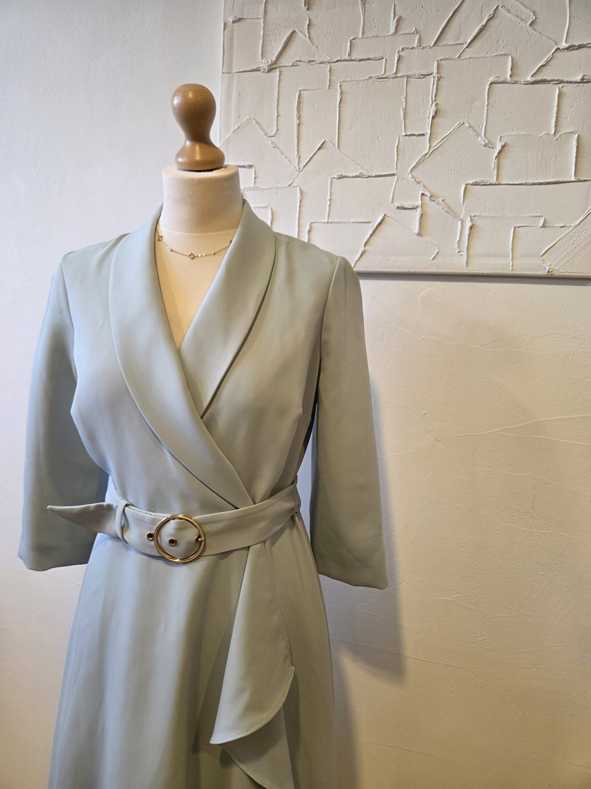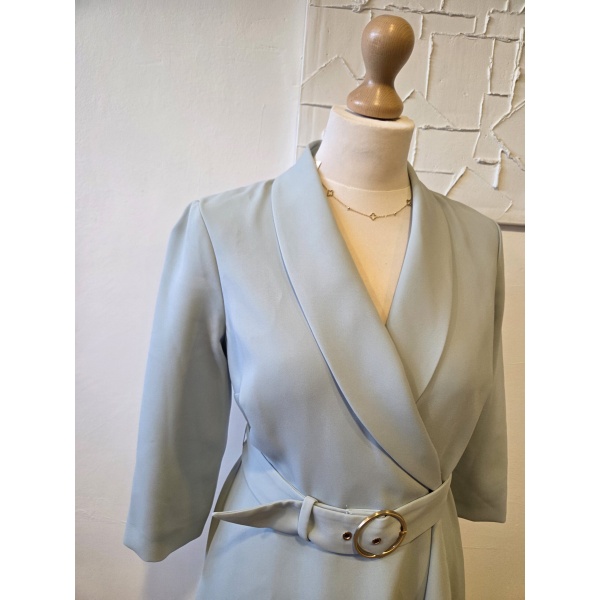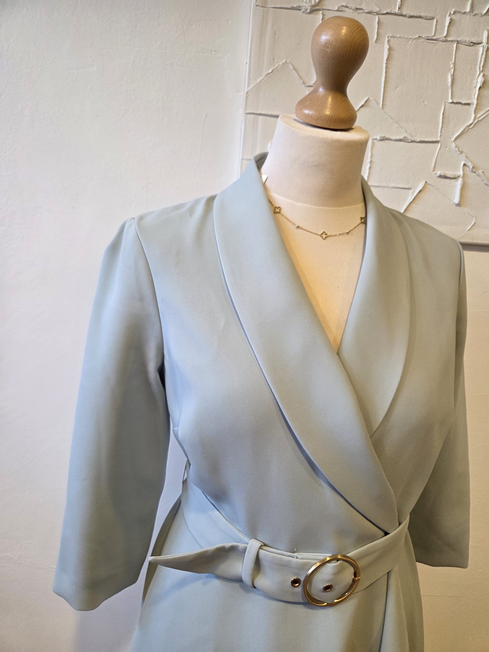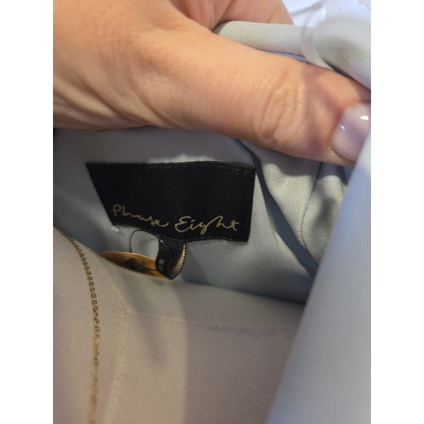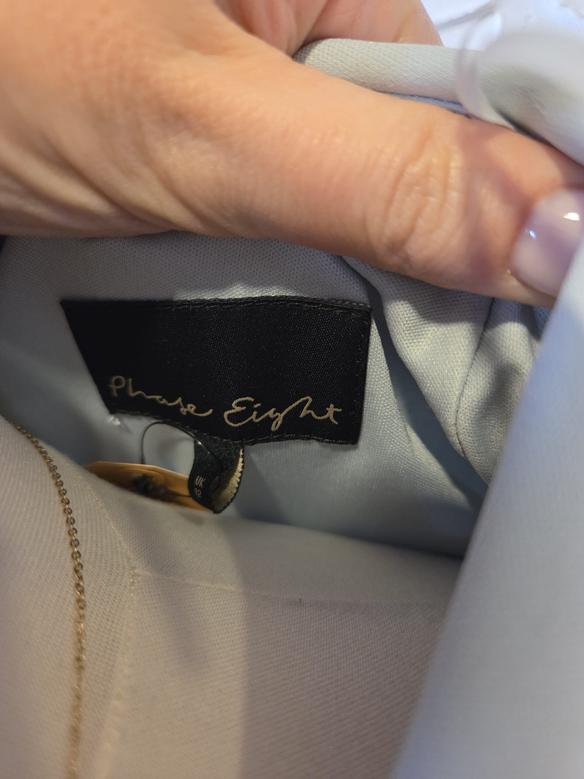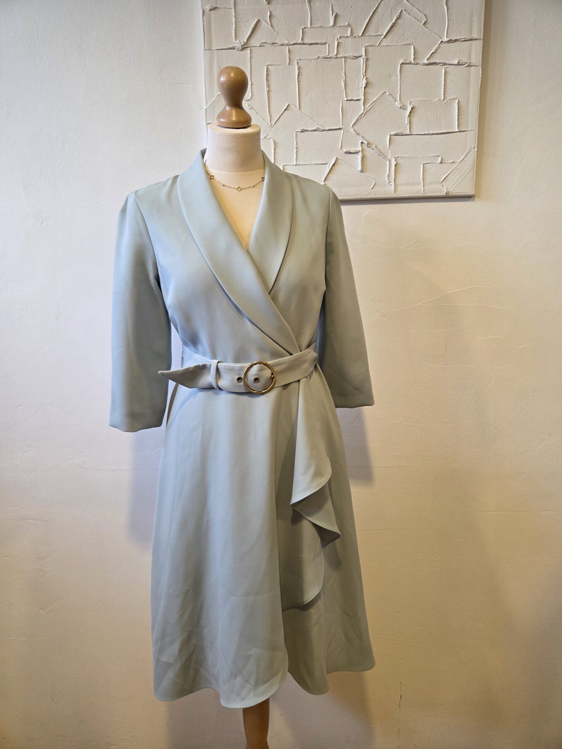 Lichtblauwe jurk van Phase Eight met overslagmodel en ceintuur. Mooie pasvorm en perfect voor een feest of gelegenheid.